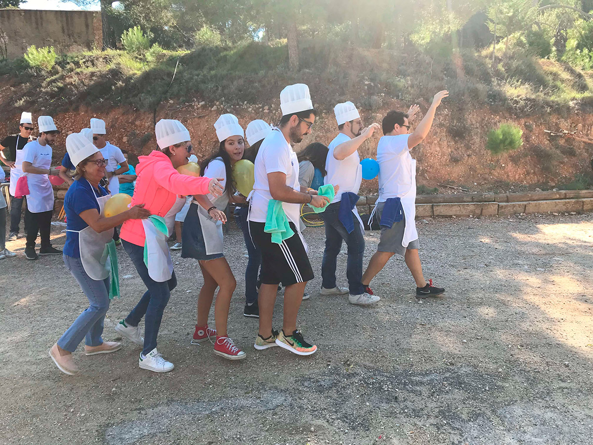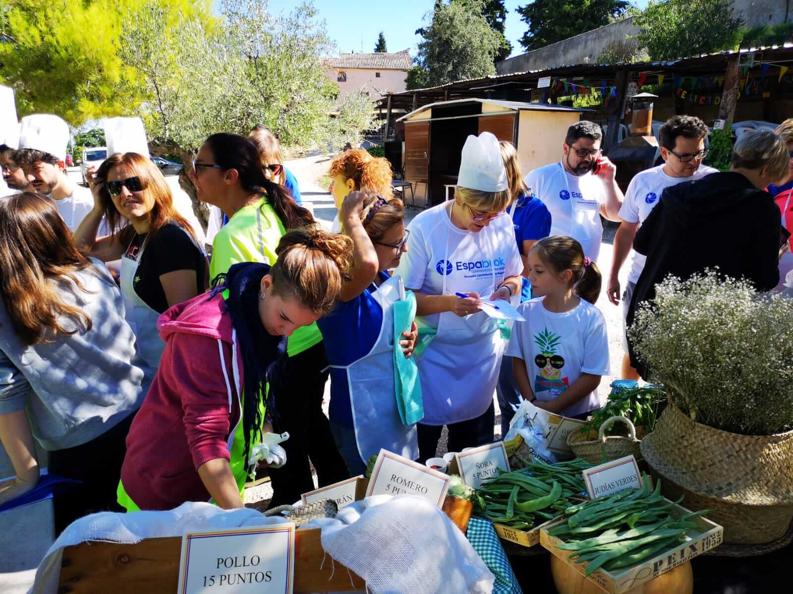 Nos dividimos todos en tres grupos y mezclando las oficinas para que hubiera más diversidad. El juego consistía en realizar siete pruebas en total y se conseguían puntos en función de cómo se había realizado la prueba. El cúmulo final de puntos servía para intercambiarlos por los ingredientes para la paella. ¡Sí, como lo oís! Por ejemplo, para adquirir la sal de la paella, se necesitaban 5 puntos. Y así, con todos los ingredientes. Ya os podéis imaginar las risas consiguiendo los puntos, pero también intercambiándolos por ingredientes.