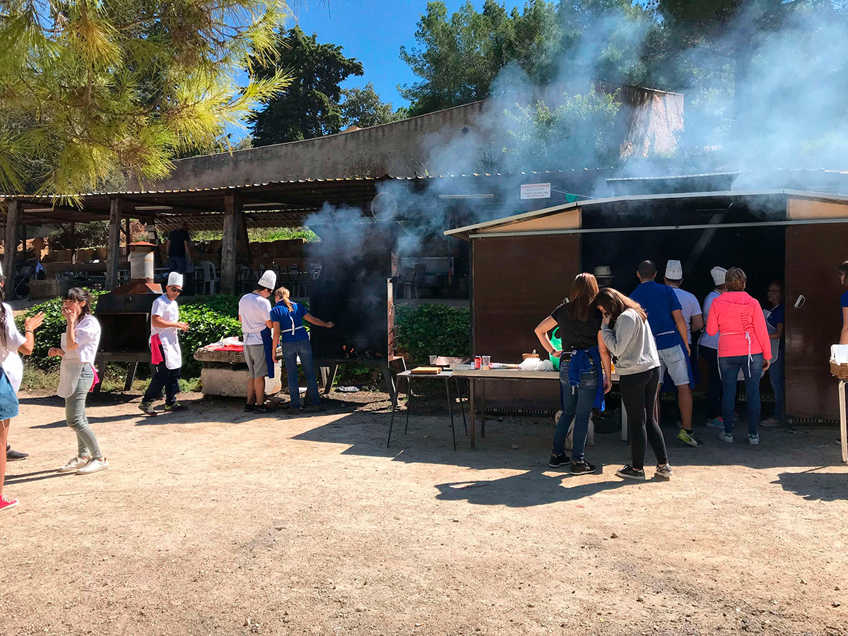 A las 10 y media de la mañana nos juntamos todos; empleados, parejas y niños en la masia El Pinaret, como cada año. De entre todas las actividades que realizamos, la más divertida y también la novedad de este año, fue el concurso de paellas con pruebas.